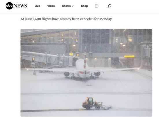 冬季风暴肆虐美国:超100万户断电,1.1万架次航班取消